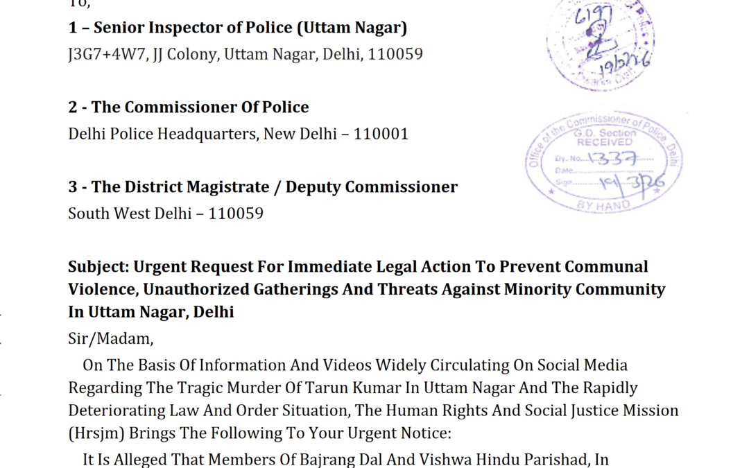 HumanRights #SocialJustice #HRSJM #DelhiPolice #UttamNagar #CommunalHarmony #Peace #UnityInDiversity #Eid2026 #StopHate #ActResponsibly #LawAndOrder #IndiaTogether #JusticeForAll #InterfaithUnity